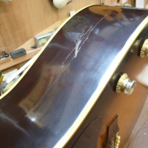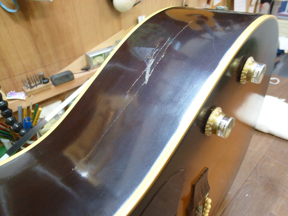 今回のギターはロッドでなんとか弦高を下げようとして締め切られていました。