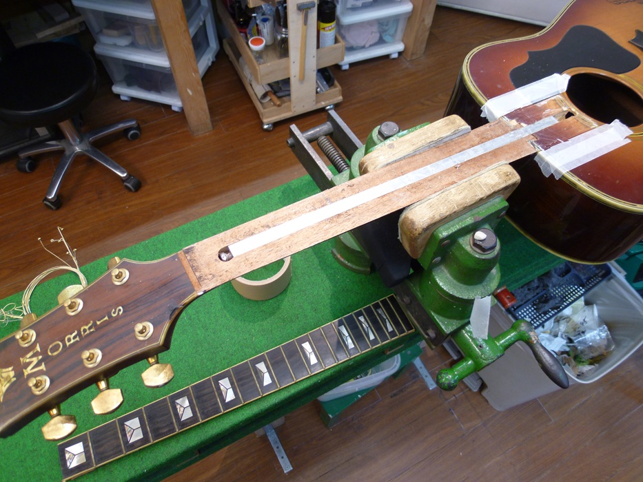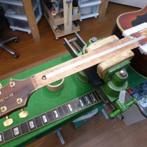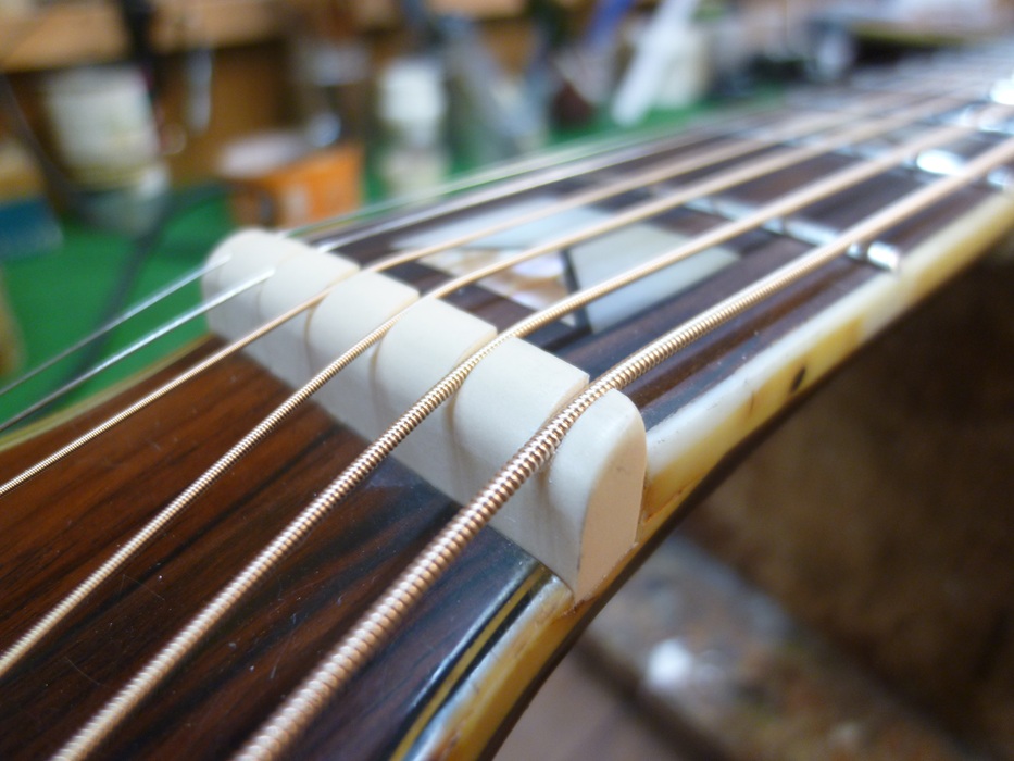 フレットが新しくなりましたので、第1フレットに合わせたナットを作ります。