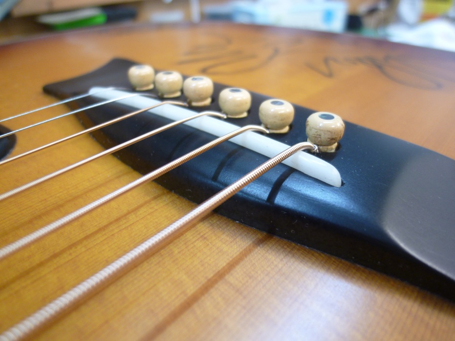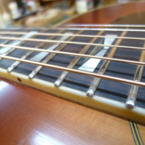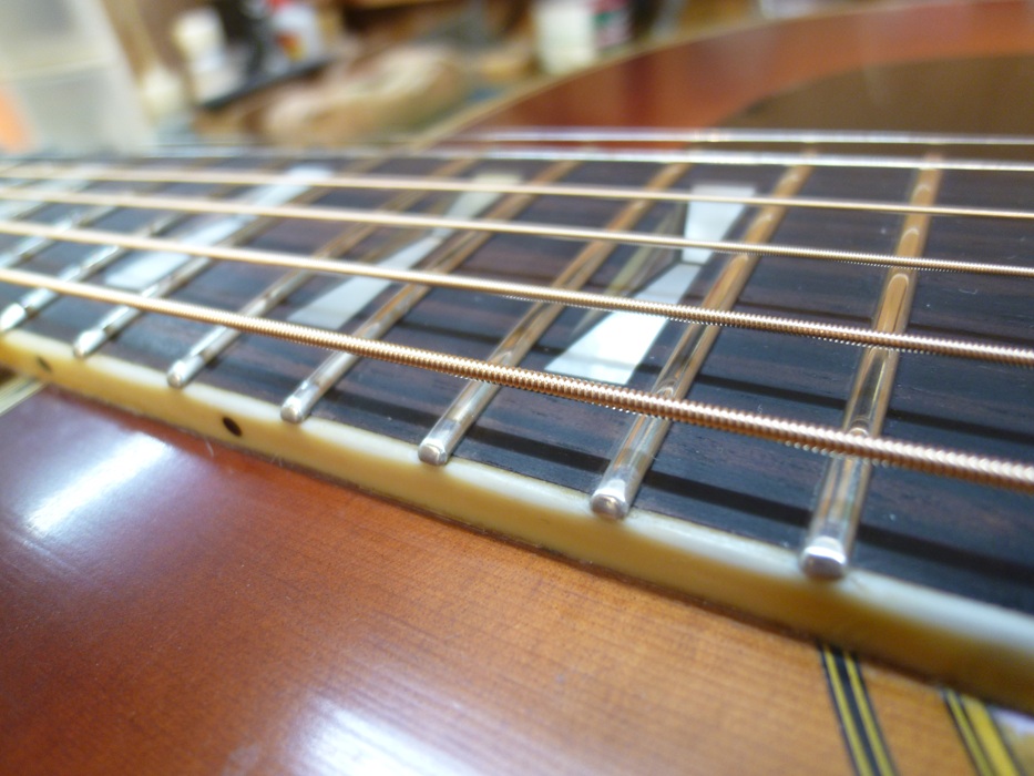 指板を貼り直したら指板修正が必要な為、フレットも交換します。