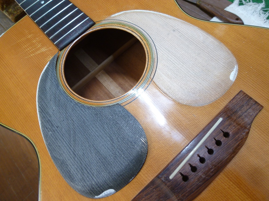 昔のピックガードは両面テープで貼り付けてないので剥がす事は楽です。