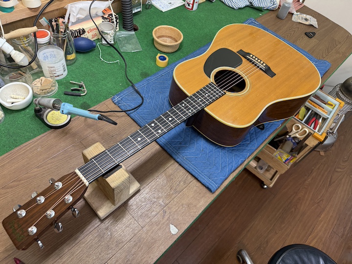 ご覧になられた方もいらっしゃると思いますが、テレビ東京の公式YouTubeにてマーチンのネックリセットの過程を取材していただきました。すでに公開されていますので、山口のネックリセットブログだけでは満足できない、という方はぜひ師匠皆川の職人技を動画でご覧いただけますと幸いです。