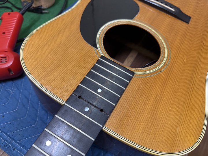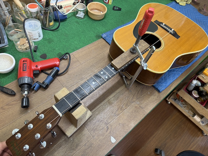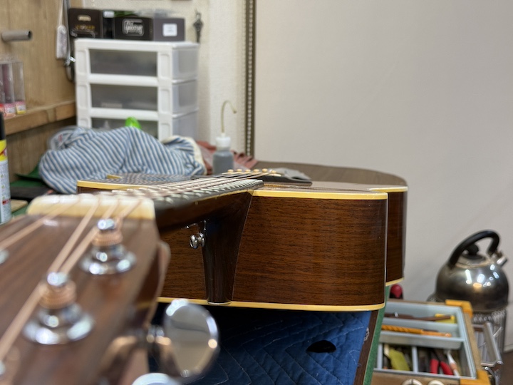 当工房の僕のブログを見ていただいてる方にはネックリセットばかりで申し訳ないのですが、、今回もネックリセットです。ネックリセットをしている当人は全く飽きません。それぞれ修理の中にも好き嫌いがあると思いますが、ネックリセットは好きな修理に入ります。