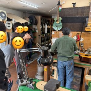 当初撮影の依頼があった時、「以前テレビで取材されて放送された時、修理依頼が殺到することはなかったから、YouTubeだけなら尚更大丈夫だろう」と二人で鷹を括っておりましたが、よくよく考えたらその時しか見られない地上波の放送よりも、ギターに興味のある視聴者へアルゴリズムがアプローチし、ずっとアーカイブとして残り続けるYouTubeの方が影響力がある、ということに気付かされました。案の定、大変な数の修理依頼をいただきまして、、、大変なことに。。