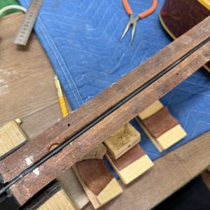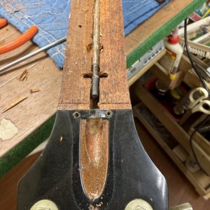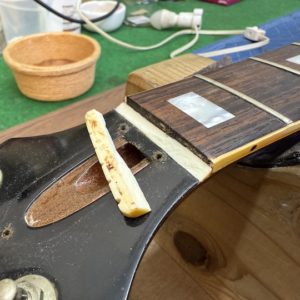 正直なところ、ロッド交換は指板を貼るまでちゃんと機能するか分からない部分もありますので、ある程度想像でシュミレーションしなければなりません。