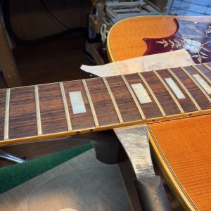今回のギターはロッドでなんとか弦高を下げようとして締め切られていました。