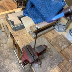 ロッドは個々のギターに合わせてガスバーナーを使って溶接します。