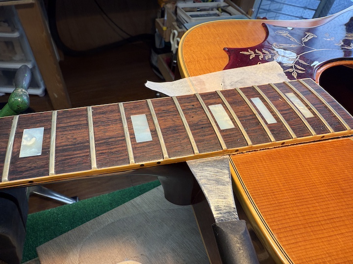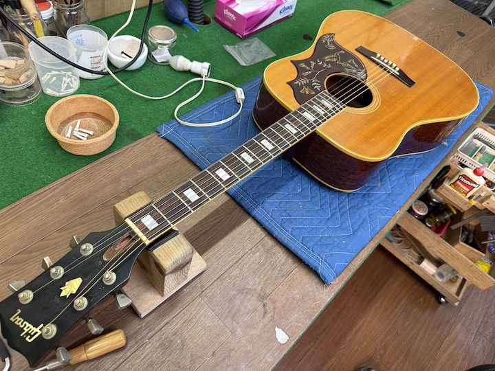 70年代のGibsonはリセールバリューが60年代ほどありませんのでなかなかこんなにコストをかけた修理は珍しく、色々と貴重な経験になります。