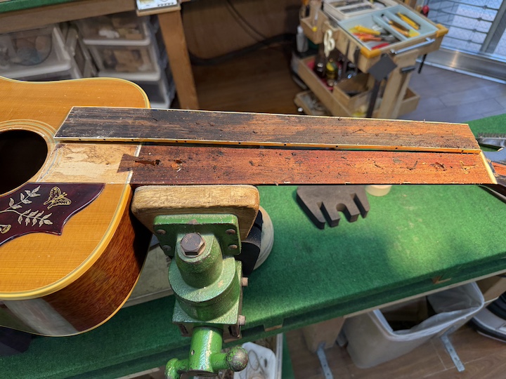 無事に指板が剥がれました。上出来です。