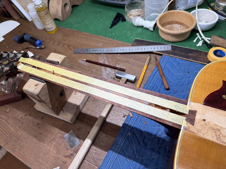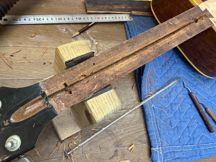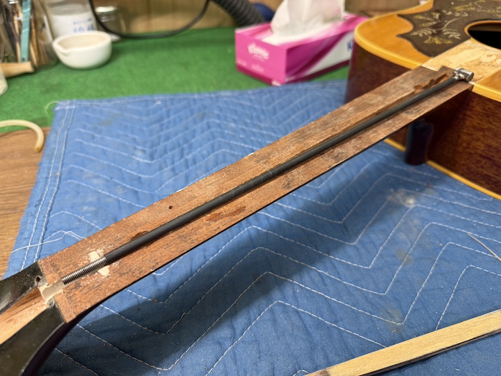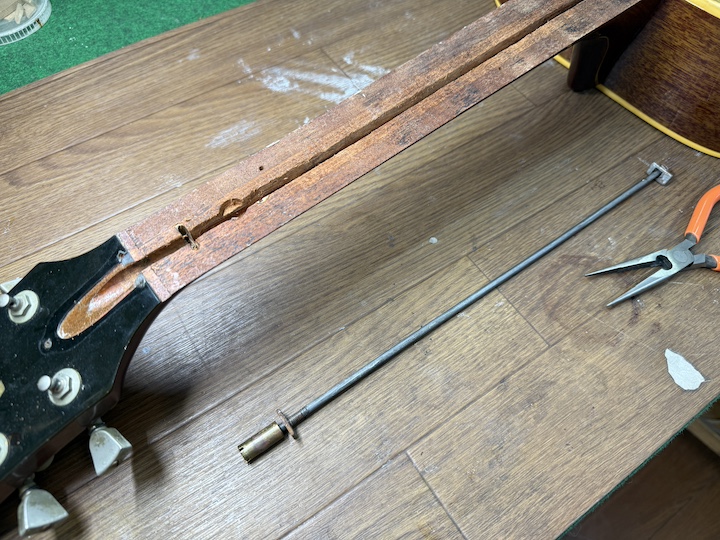正直なところ、ロッド交換は指板を貼るまでちゃんと機能するか分からない部分もありますので、ある程度想像でシュミレーションしなければなりません。
