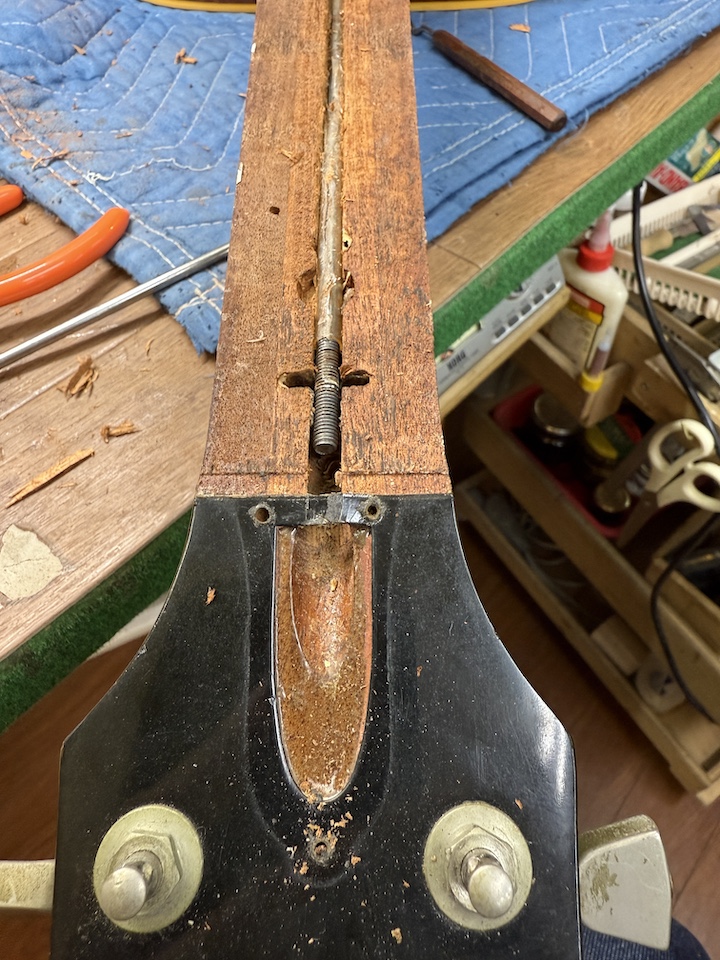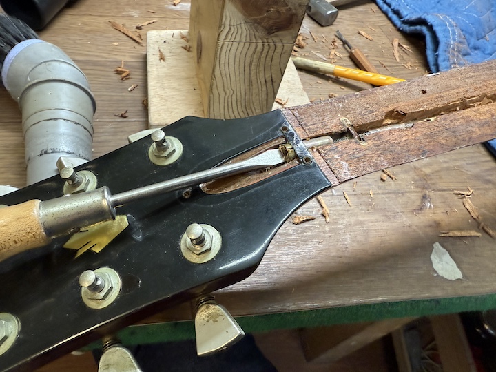 本来のGibsonらしいロッドに変更するため溝をそれ用に加工します。