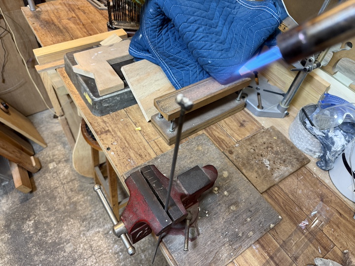 ロッドは個々のギターに合わせてガスバーナーを使って溶接します。