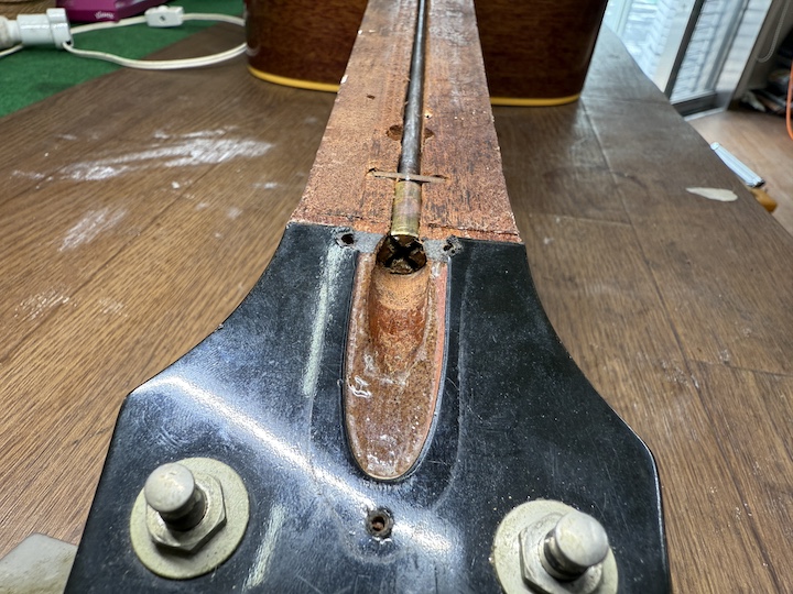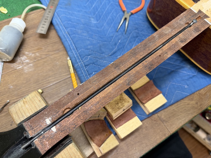 今回のギターはロッドでなんとか弦高を下げようとして締め切られていました。