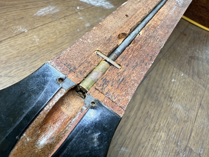 全容が解明されました。太いロッド頭用に溝も広げられています。ワッシャーもナットから2cmほど入ったところに仕込まれているので、やはり製作された当初からこの仕様である可能性が高いですね。