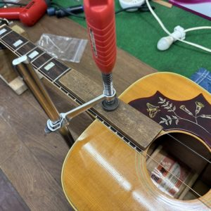 指板が元に戻り、ロッドのボルトナットを装着。いい感じですね!Gibson!