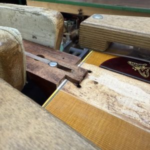 これほどの時間をかけた大掛かりな修理は終盤から徐々に完成時が楽しみになります。見た目はもちろんですが、弾いてみて「サウンドがどうなのか」も楽しみなのです。そこが楽器修理の特権というかなんというか、醍醐味でもあるのです。